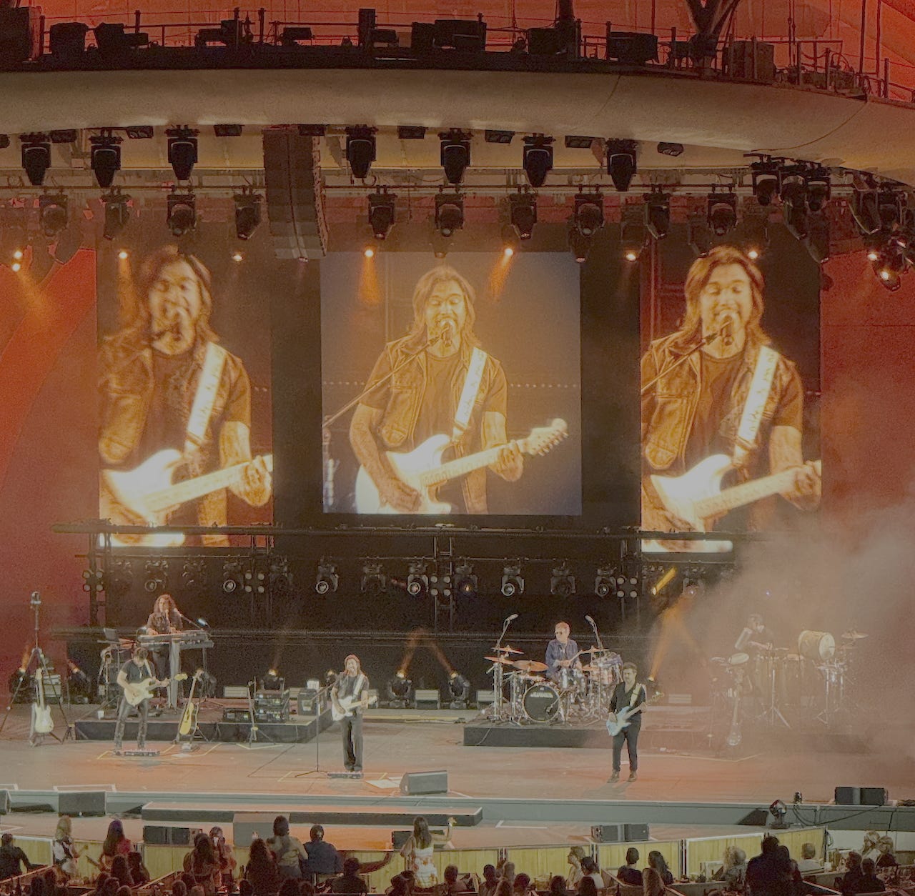 Y entonces, comenzó Juanes. Un concierto fabuloso, lleno de energía y talento, en el que nos llevó por su historia musical entre clásicos propios y ajenos, desde Persiana Americana de Soda Stereo hasta Querida de Juan Gabriel. En un momento, tomó una guitarra acústica, bajó del escenario y, con ayuda de seguridad, caminó hasta el centro del anfiteatro (¡con casi 20.000 personas!) para cantar entre la gente. Le dedicó un tema a su hija Paloma, que lo acompañaba en la gira, y otro a los inmigrantes, aunque todo el concierto tenía una fuerte carga dedicatoria al esfuerzo, corazón, lucha del inmigrante. Contó cómo llegó por primera vez a Los Ángeles en 1996, cómo firmó aquí su primer contrato musical, y cómo desde entonces su vida cambió para siempre.